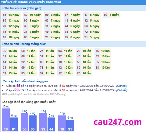 + Bộ số 47: ngày ra gần nhất 06-01-2026, số ngày gan 0 ngày, gan cực đại 30 ngày.