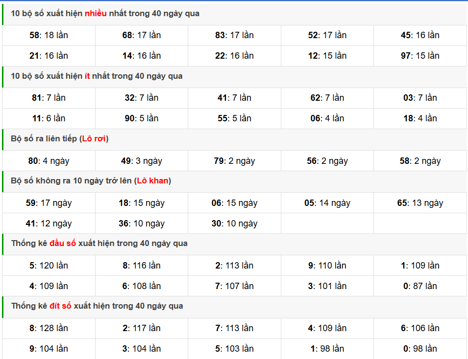 Những thống kê từ kết quả dự đoán lô chuẩn rất quan trọng, là cơ sở để chúng ta biết những cặp số hay về hoặc đang khan. Những cặp lô tỷ lệ về nhiều hoặc về ít. Để đưa ra cách chơi hiệu quả