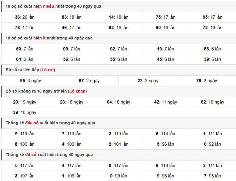 Những thống kê từ kết quả dự đoán lô chuẩn rất quan trọng, là cơ sở để chúng ta biết những cặp số hay về hoặc đang khan. Những cặp lô tỷ lệ về nhiều hoặc về ít. Để đưa ra cách chơi hiệu quả